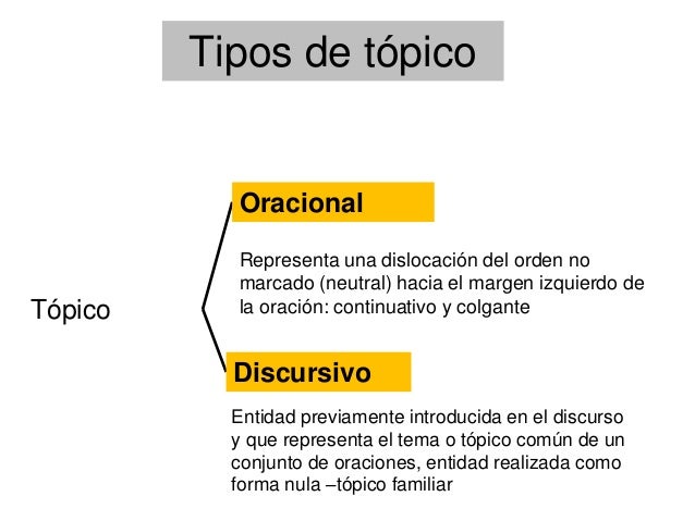 5.2. EL TÓPICO es información temática o conocida, no enfatiza, sí tiene pausas y son modificadores oracionales.